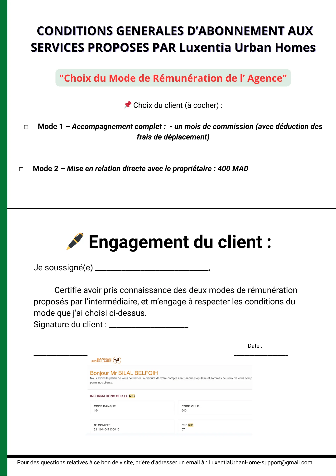 π© Un seul paiement fixe de 400 DH à effectuer avant la remise des informations.